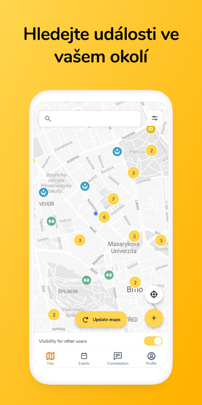 Crie um evento definido ou personalizado. Coloque-o no mapa e decida se seus amigos ou o mundo inteiro descobrirão.