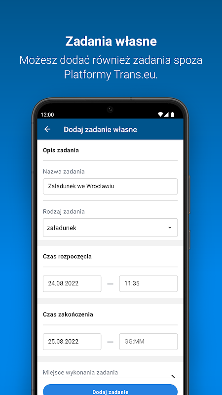 - a capacidade de adicionar tarefas de fora da Plataforma Trans.eu,