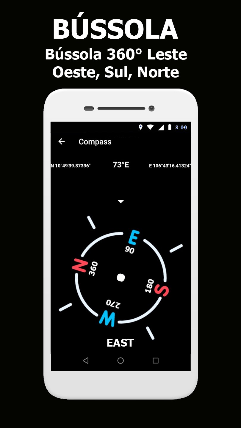Bússola com direção leste oeste sul norte, bússola 360° pode calcular o ângulo em qualquer direção girando o dispositivo.