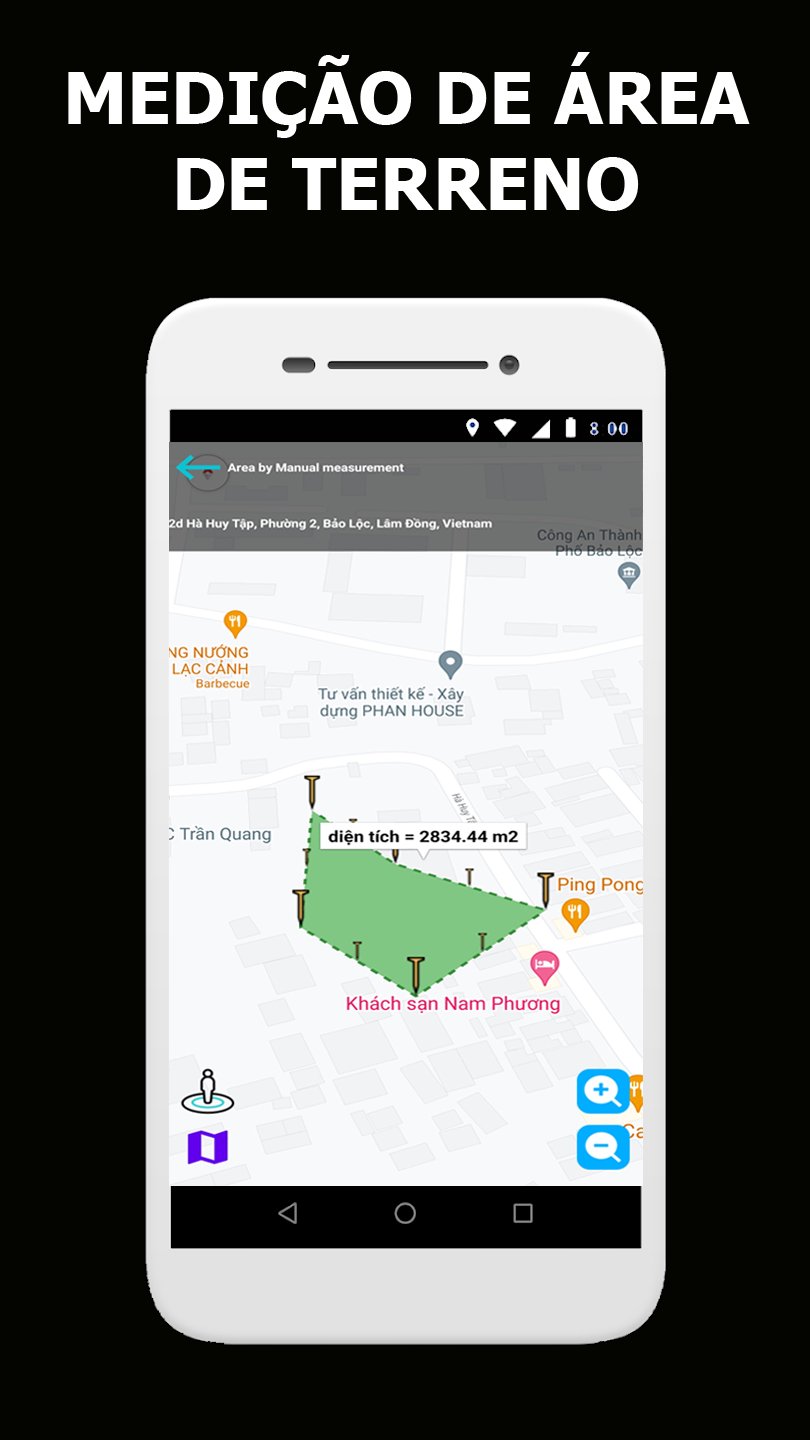 Medição de área terrestre caminhando: você pode se mover para qualquer lugar do mundo em tempo real, o compartilhamento de localização ao vivo calculará automaticamente a medida da área e mostrará o resultado para você na tela.