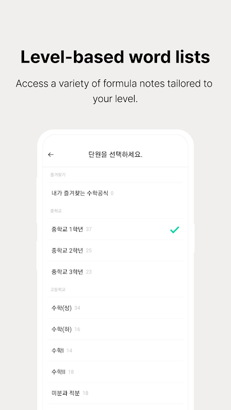 O aplicativo inclui currículo de ensino fundamental e médio, permitindo que você escolha as fórmulas nas quais deseja se concentrar.