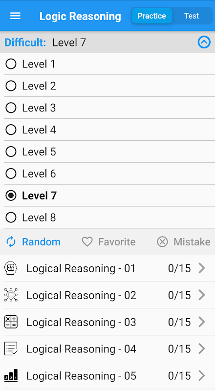 2. Support two modes: Practice and Test.