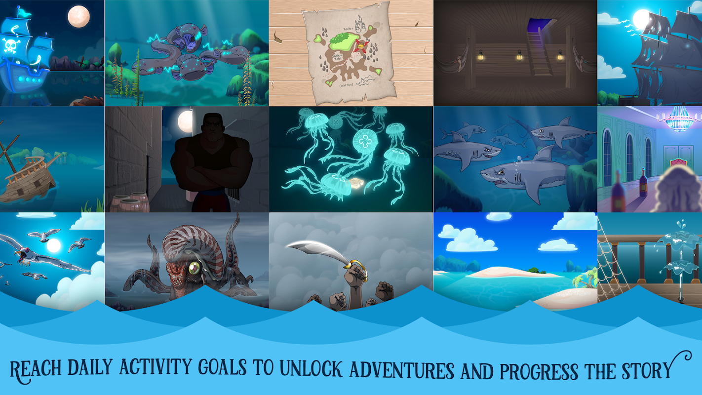 Create your character and invite up to 4 friends and family to join your ship’s crew. Their real-world steps generate Crew Points, which you deploy as the captain to take action at obstacles and encounters.