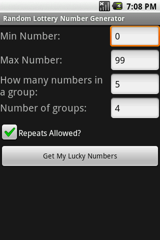 Dado um mínimo, máximo, quantos números estão em cada grupo e número de grupos a gerar, o aplicativo gera grupos de números com as restrições especificadas.