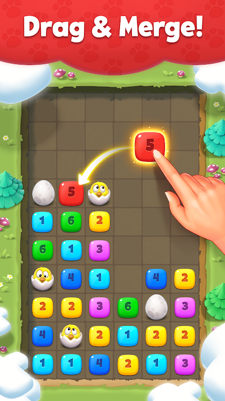 Como jogar: arraste uma peça com um número para outra com o mesmo número para mesclá-las e criar uma nova peça! Lucky o guiará pelas etapas!