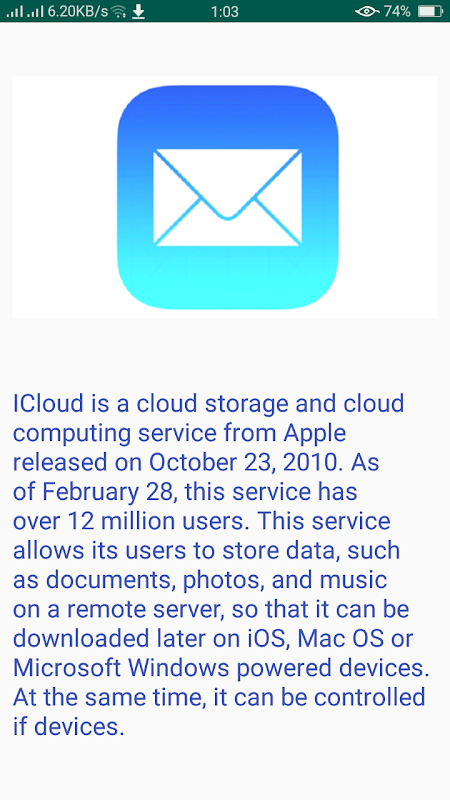 Six of these apps highlight the story of six renowned email service providers. The size of this app is 2.5 MB so the pages of the app will load faster. Can be used offline and online. The app has six buttons.