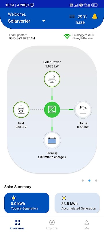 Device Offline Screen Removed for All Inverter. In offline case it will now show data with last updated date. After 1 hrs. it will greyed out all animations.