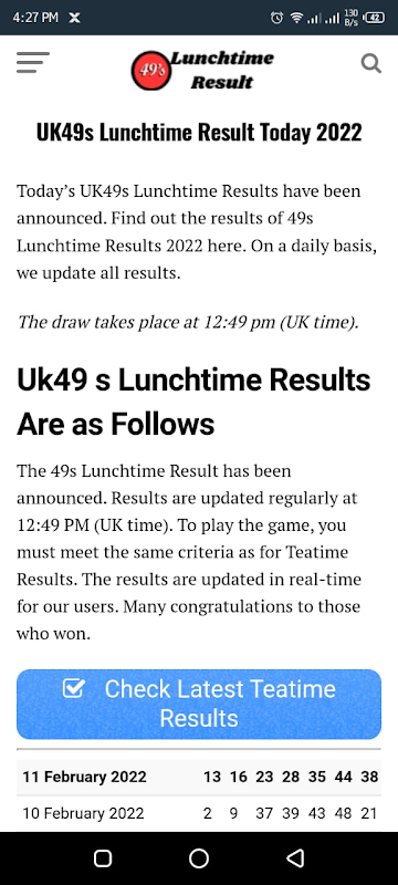 Foi anunciado o resultado da hora do almoço de 49s. Os resultados são atualizados regularmente às 12h49 (horário do Reino Unido). Para jogar o jogo, você deve atender aos mesmos critérios dos resultados da hora do chá. Os resultados são atualizados em tempo real para nossos usuários. Muitos parabéns a quem ganhou.