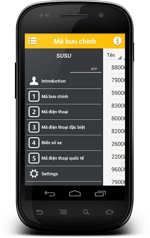 Informações sobre Mã điện thoại - Mã bưu chính - Mã biển số xe APK