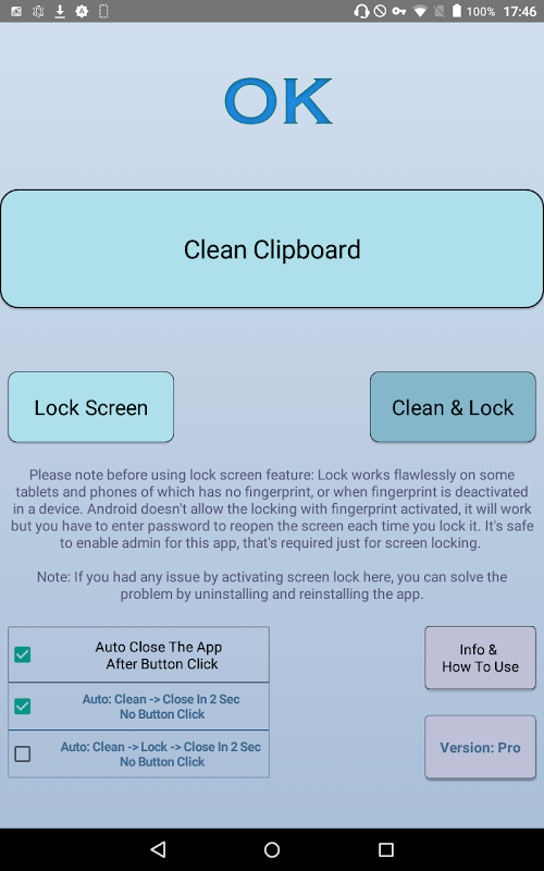 - Você pode deixar o aplicativo fazer as tarefas e depois fechar automaticamente, basta clicar no ícone do aplicativo para abri-lo e ele faz o resto. Você pode ativar esse recurso na versão pro.