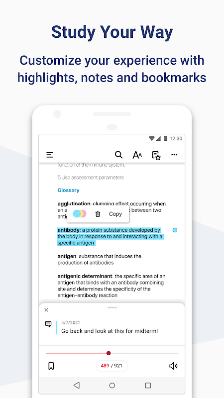 • Personalize marcadores e adicione notas para uma experiência de estudo rica.