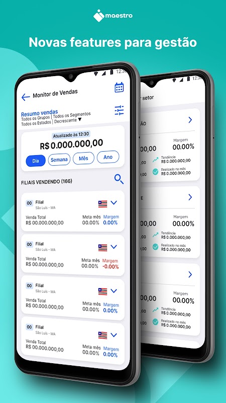 DRE - Oferece uma interface onde é possível, pelos supervisores, gerentes de loja e setor, acompanhar a DRE de forma fácil e ágil, possibilitando, também, filtrar informações de faturamento, perdas e despesas, escolhendo o período e detalhes de categoria.