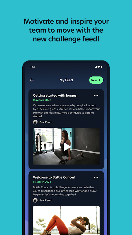 Colabore ou compita em desafios de movimentação de equipe com seus amigos, familiares e colegas. Acompanhe suas atividades, defina hábitos diários, converse e compartilhe seu progresso com todos. Motive e inspire sua equipe com nosso feed de desafios, o novo lar para todas as notícias sobre desafios.