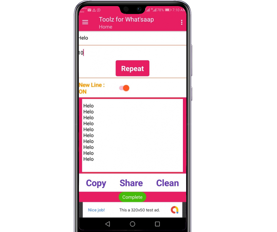 Text Repeater: Simply Type your Text Then Put Number of time you Want to Repeat and choose new line or not then it automatically repeat your text.