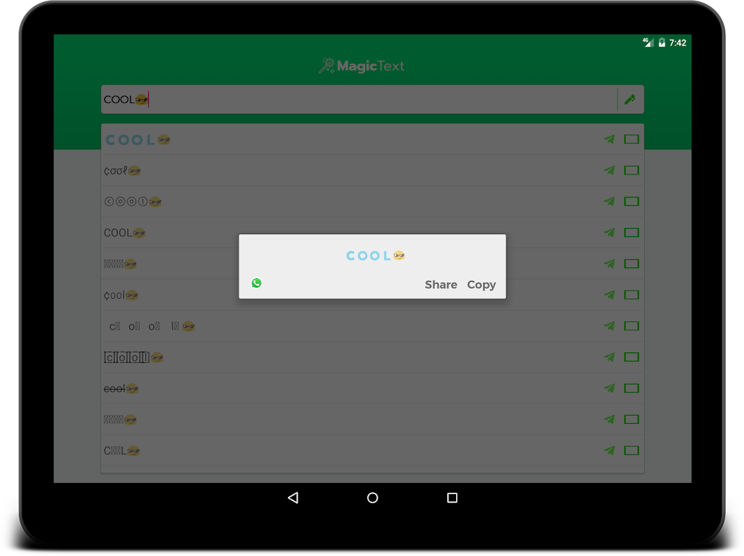 Create stylish text with Magic Text , share it with friends through whats app, facebook etc and impress them!!