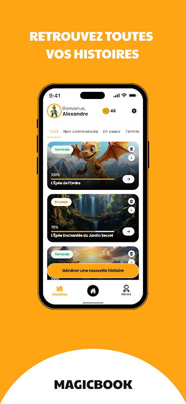 Com o Magicbook, crie histórias únicas e envolventes para crianças de 3 a 12 anos. Personalize cada aventura com o primeiro nome, aparência e até um acompanhante que acompanhe seu filho na jornada.