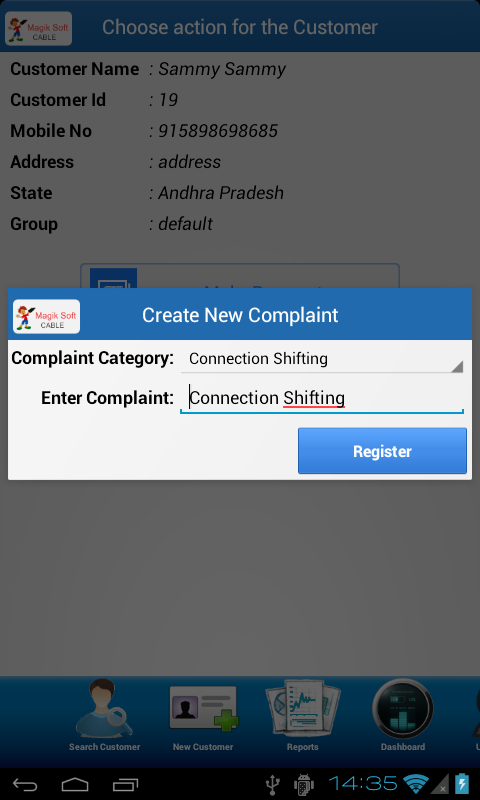Magiksoft Cable Android App offers complete customer relationship management solution to local cable operators by keeping track of their customer's profile, creating new customers, Make Payments and print a receipt via Bluetooth Printer, complaints Management or any customer queries which can be resolved through your Android Smart phones - at anytime and from anywhere.