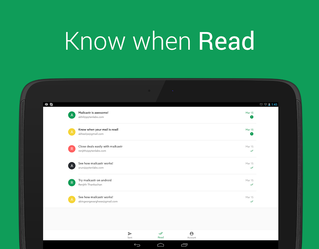 Mailcastr is an email tracking app for Gmail and Android with better email productivity that lets you know while your mails are opened.