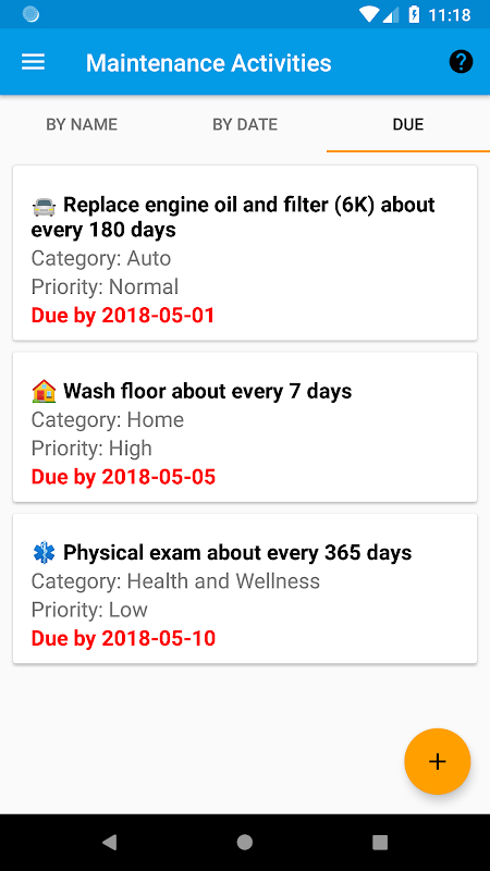 Manutenção Atividade Rastreador ou MAcTrack para o short é um aplicativo lembrete de manutenção para rastrear recorrentes tarefas pessoais e de manutenção em casa regulares. Todos nós temos várias tarefas de manutenção que precisamos para seguir em uma base regular. Coisas como a substituição do filtro de ar casa condicionador de cada mês ou ir para um check-up médico com o médico uma vez por ano ou a substituição do óleo do motor do carro a cada seis meses.