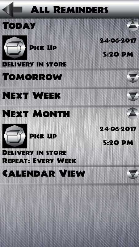 ♣♣♣ Já aconteceu com você se esquecer de pagar as contas ou tomar um remédio? Nunca mais isso ocorrerá graças ao lembrete legal que você pode obter no seu smartphone ou tablet agora. Este popular ☀Make A Reminder☀ pode ser usado por pessoas de todas as idades e é tão útil que pode facilitar a vida de todos. Depois de selecionar o tipo de lembrete e definir horário e data para ele, você pode personalizar o som da notificação de alarme. Desça a lista longa e use o que você mais gosta. Graças à opção de desenhar o novo lembrete, você pode ajustá-lo às suas necessidades selecionando a cor perfeita do plano de fundo e configurando sua própria imagem. Adicione uma descrição personalizada para fazer anotações das tarefas da sua lista de "fazer". Se você tem medo de chegar atrasado ao seu compromisso de dentista ou para pegar alguém que ama do aeroporto, então você pode configurar uma opção anterior e sua nova lembrança tocará antes do tempo especificado. O popular ☀Make A Reminder☀ está aqui para ajudá-lo a organizar suas obrigações diárias para que você não tenha que memorizar tudo. Defina seu dispositivo para tocar e lembrá-lo das datas mais importantes em sua vida.