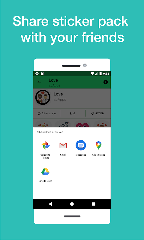 The eSticker app is for creating your own sticker packs and sharing them with your family and friends.