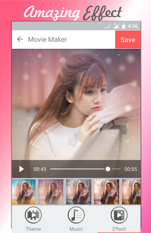 Make Video é um editor de vídeo, apresentação de slides de fotos e aplicativo de edição de filmes.