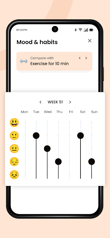 • Acompanhe o seu progresso: monitore a influência dos hábitos diários no seu humor e bem-estar, promovendo um ciclo de feedback positivo.
