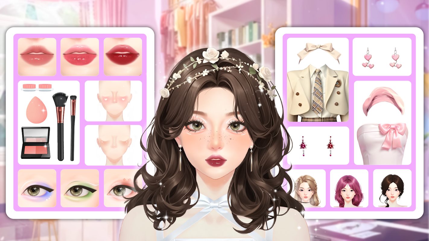 Escolha entre uma vasta seleção de roupas, penteados, maquiagem e móveis da moda para criar o visual ideal para suas clientes.