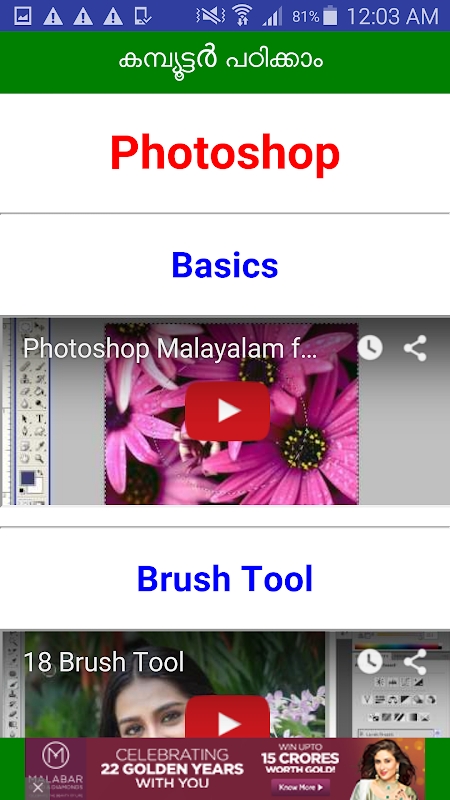 Computador Vídeo Tutoriais em Malayalam