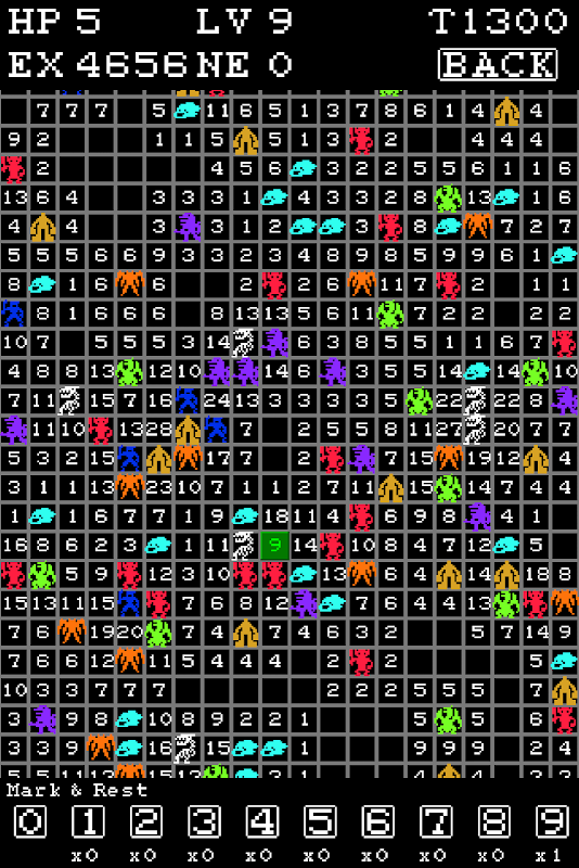 É um pouco diferente do Campo Minado, pois o número que você revela quando clica em um quadrado é o total dos níveis dos monstros nos quadrados adjacentes.