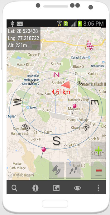 ➡ GPS compass map allows user to find Restaurants, ATMS, Hotels, Bank, Schools, University, Post office, Cafe and Police station etc nearby.