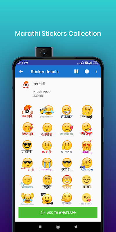 Quer você seja um estudante Seja compartilhando piadas em um grupo da faculdade, um profissional enviando mensagens para colegas ou um familiar comemorando festivais, este aplicativo tem adesivos Marathi para WhatsApp para cada momento.