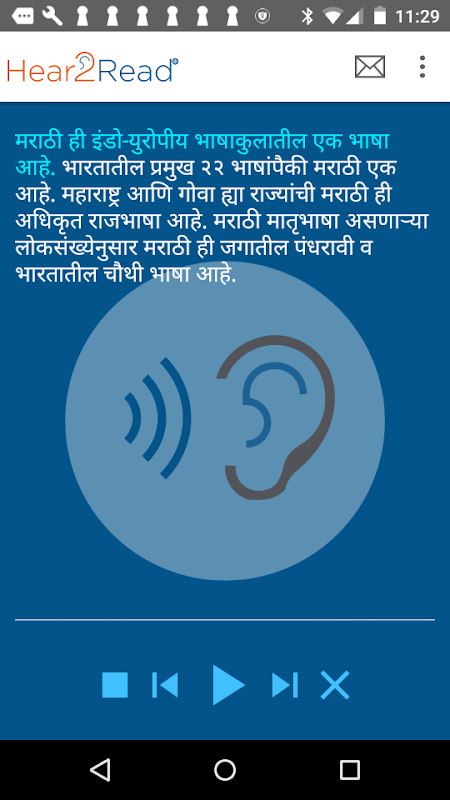 Marathi voz masculina para Hear2Read Text-To-Speech (TTS) Engine App