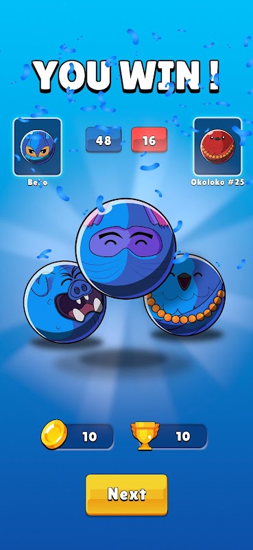 Seja mais esperto que seu oponente derrubando as bolinhas dele para fora da arena ou posicionando estrategicamente as suas para obter o máximo de vantagem. O jogador com a maior pontuação após 8 rodadas vence a partida e reivindica o direito de se gabar!