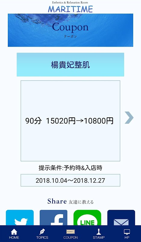 長野市のエステサロン【MARITIME】の公式アプリが登場しました!