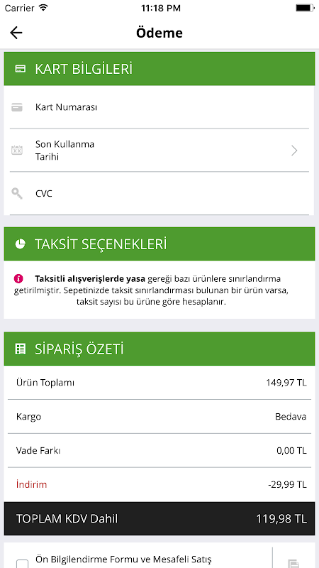 • Günün kampanyalarında sunulan fırsatlara taksit seçeneğiyle sahip olabilirsiniz.
