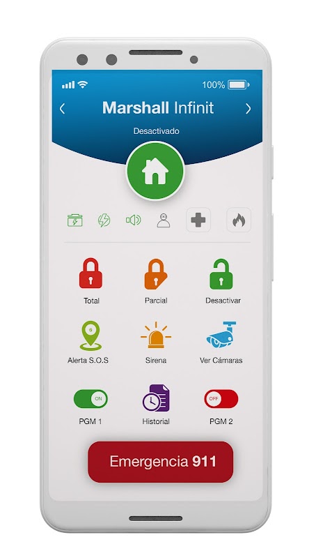 Aplicativo exclusivo para painéis de alarme da série Marshall Infinit.