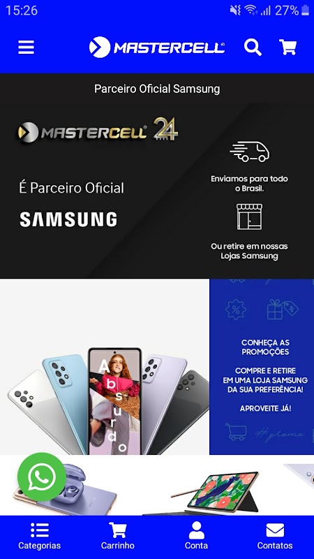 Por ser um PARCEIRO OFICIAL SAMSUNG, a MASTERCELL possui a linha completa da tecnologia Samsung, recebendo sempre as novidades e lançamentos com os melhores preços.
