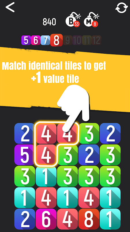 - Toque nos blocos para mesclá-los com outros blocos que tenham o mesmo número.