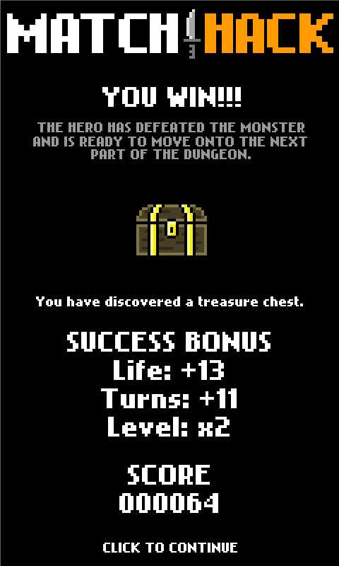 Welcome to MatchHack, an open source, pick up and play, RPG matching game.
