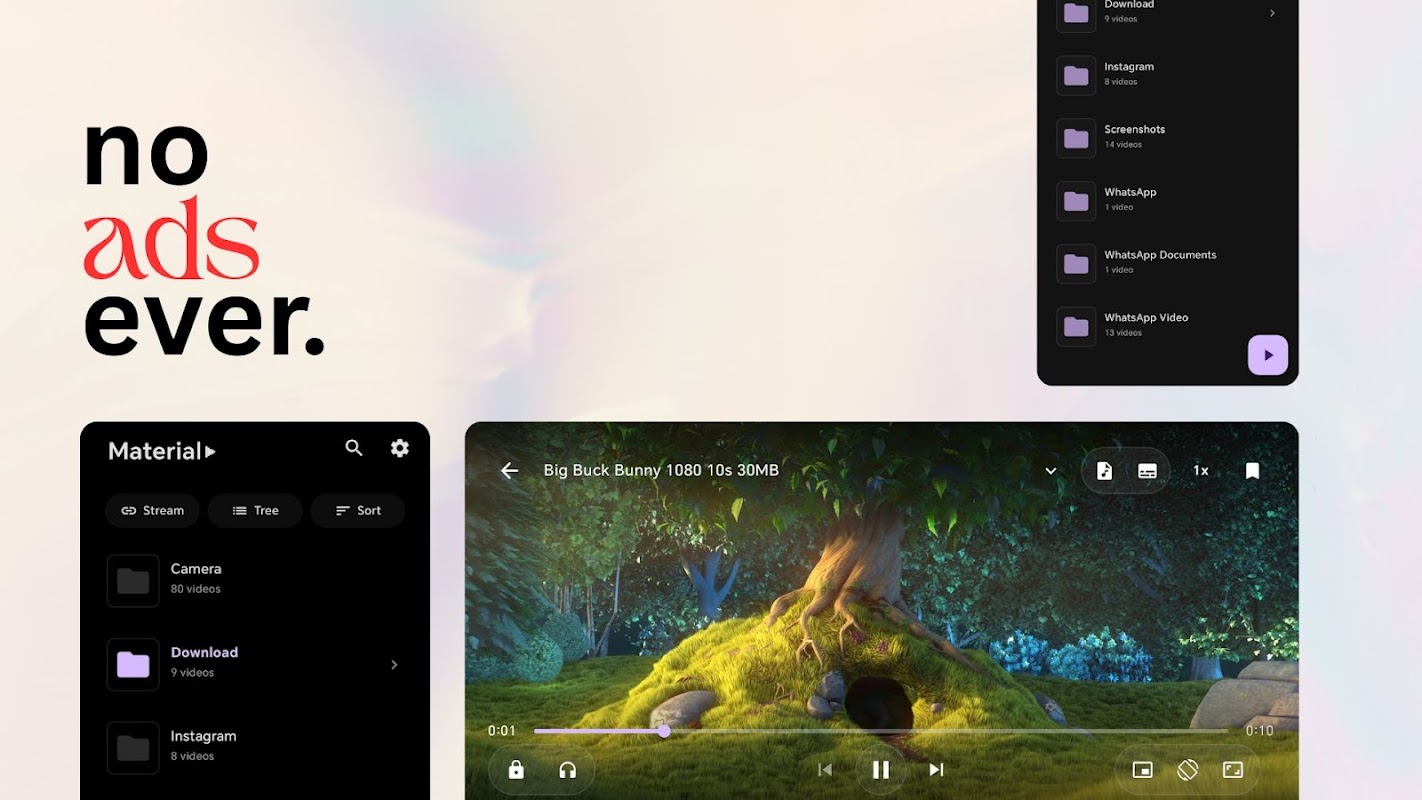 Baixe o Material Video Player hoje mesmo e descubra a combinação perfeita de potência, compatibilidade com todos os formatos e um design atraente. É o único player de vídeo que você precisa.