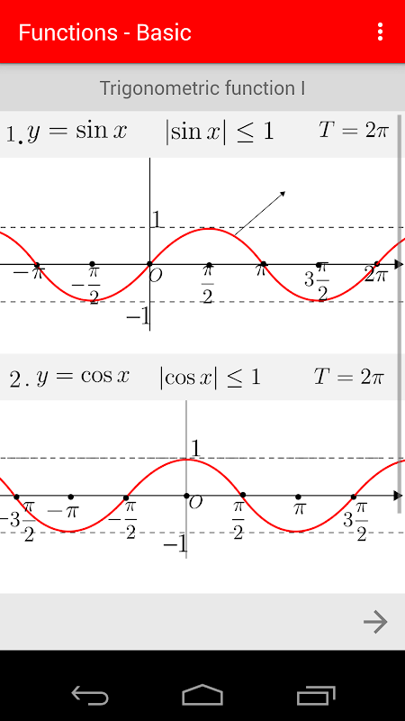Nossos Funções Matemáticas é uma aplicação ideal livre para aprender as funções básicas de matemática. Ele contém as fórmulas mais utilizados de funções e gráficos.