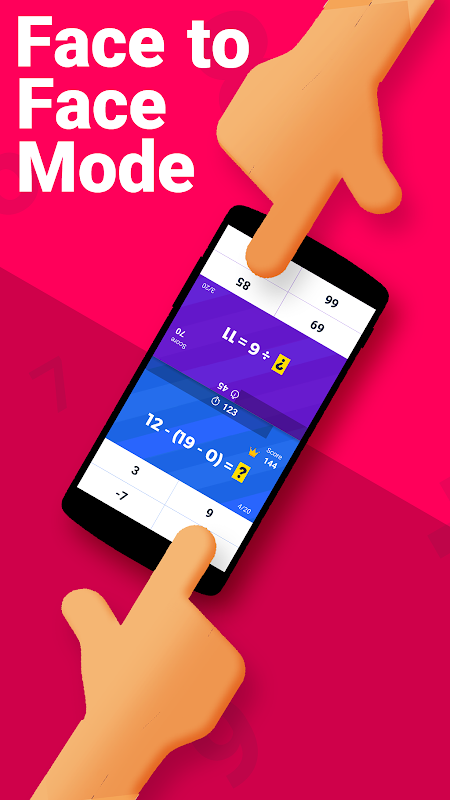 - Face to face with friend in offline, split screen, face to face math battle mode