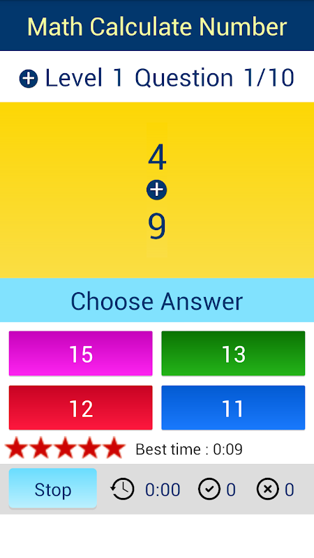 Correct 100% get 1 star and record the best time.