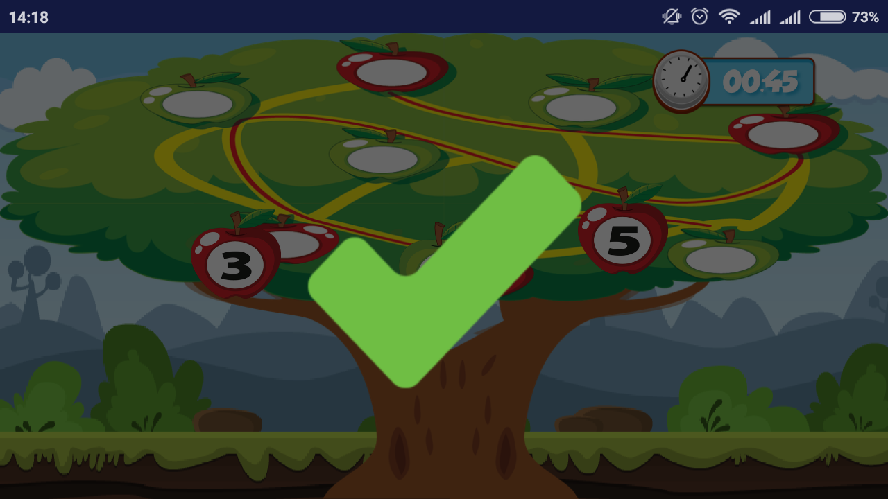 A partir desses quatro operadores, as crianças escolhem um operador. Um operador com dois números aleatórios. Após este número, pegue quando o número cair da macieira. Em seguida, mostre dois cálculos dessa matemática infantil. Um cálculo está certo, outro está errado. Neste aplicativo de matemática para crianças, você precisa escolher a resposta certa.