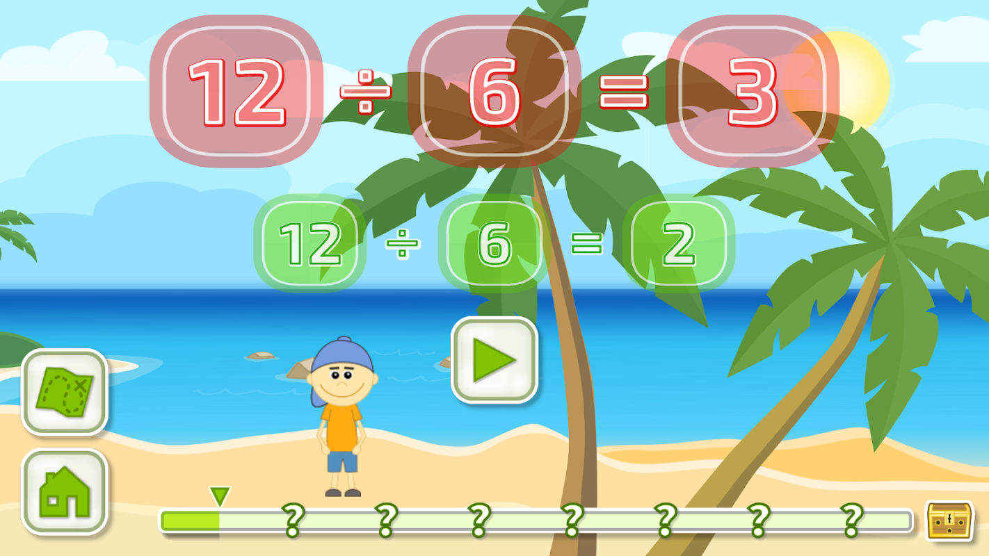 Cada vez que você dá a resposta correta, você avança um passo e se aproxima de um tesouro.