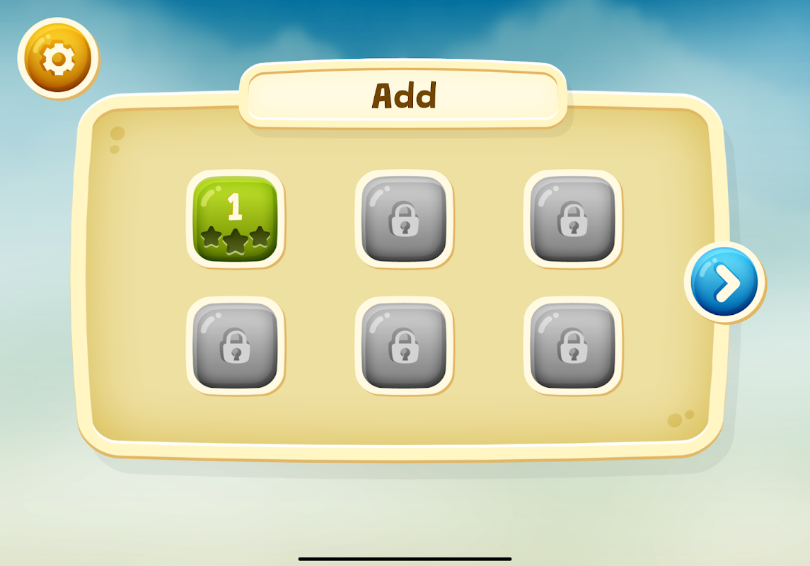 Você ganha estrelas completando operações de adição, subtração, multiplicação e divisão de forma rápida e correta.
