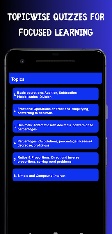 Testes sobre tópicos: pratique perguntas categorizadas sobre todos os principais tópicos de matemática.