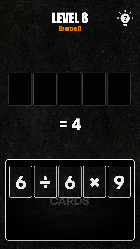 Coloque os cartões com os números fornecidos nos espaços vazios para completar a equação e resolvê-la. De problemas simples como "2 + 3 = 5" a equações altamente complexas como "9,64 / 4,23 + 3,11 * 1,1 - 0,5 = 6,65 / 1 - 1,43", a dificuldade aumenta para desafiar seus limites.