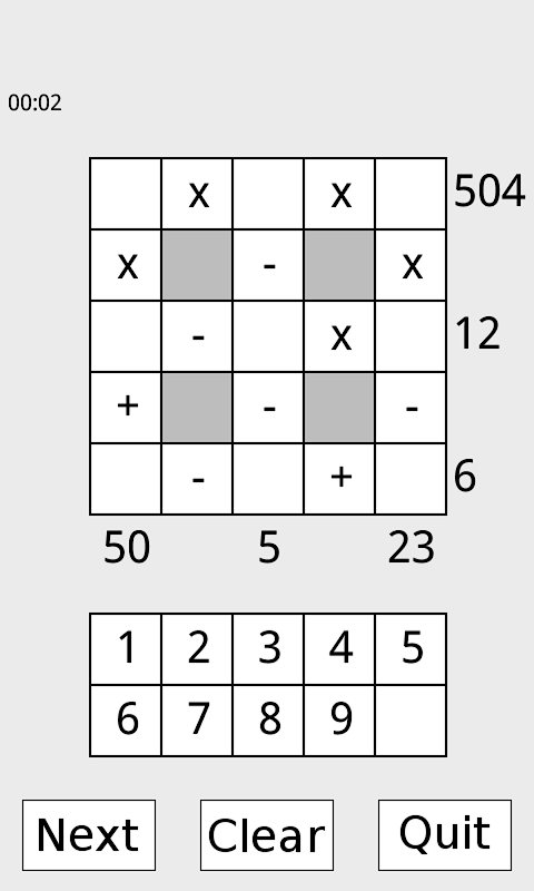 Preencher o quadrado com os números de 1 a 9 para que a aritmética corresponda aos números no final de cada linha e coluna.